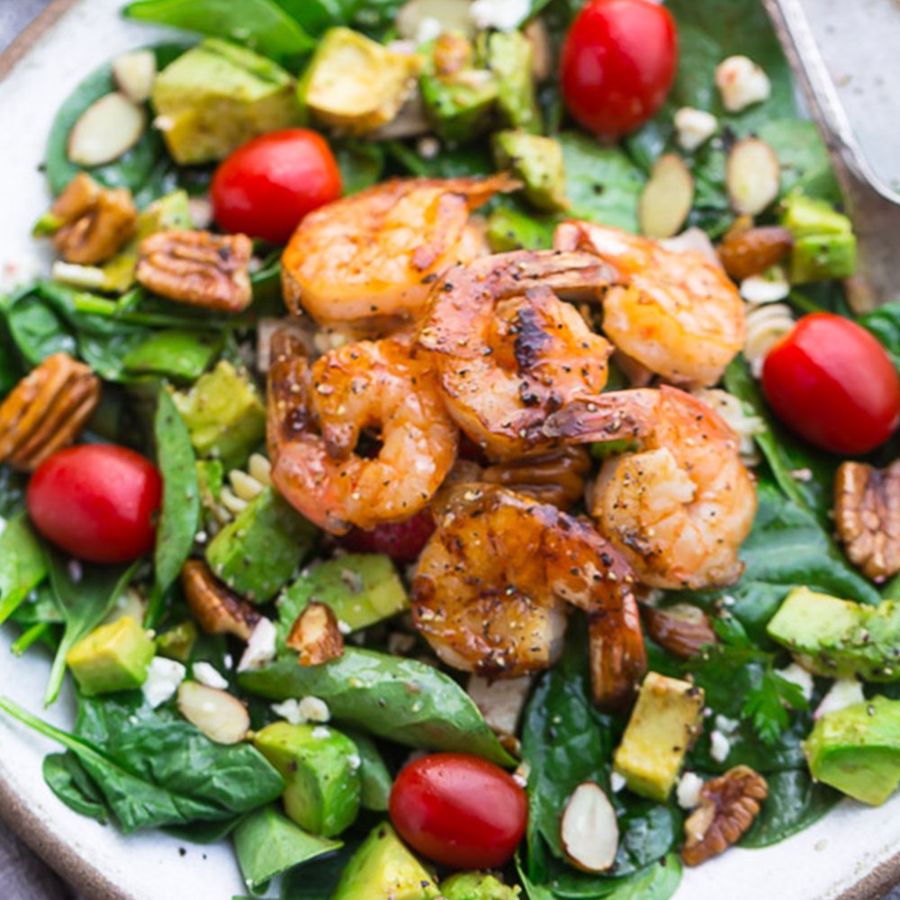 A hearty and satisfying Spinach and Shrimp salad made with fresh ingredients and love.